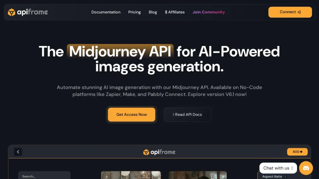 - Programmatic Access: As a provider of the Midjourney API, APIFRAME offers programmatic access to AI image generation, transforming how we create and engage with visual content.